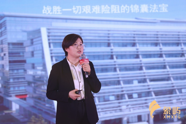 ▲象嶼金象融資租賃事業(yè)部副總監(jiān)邵華帶來(lái)《創(chuàng)新發(fā)展 揚(yáng)帆遠(yuǎn)航》的宣講