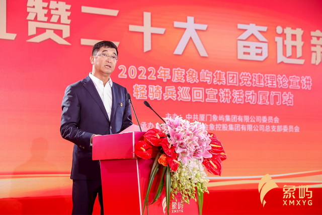 禮贊二十大,奮進(jìn)新征程。11月28日,2022年度象嶼集團(tuán)黨建理論宣講輕騎兵巡回宣講廈門站,在剛剛啟用的集團(tuán)新總部——象嶼集團(tuán)大廈舉行。象嶼人以這一獨(dú)具象嶼特色的黨建文化活動(dòng),學(xué)習(xí)宣傳貫徹黨的二十大精神,為新征程錨定紅色原點(diǎn)、鼓足文化風(fēng)帆,吹響繼往開(kāi)來(lái)、接續(xù)奮斗的號(hào)角。廈門市國(guó)資委黨委副書記、二級(jí)巡視員陳華,集團(tuán)領(lǐng)導(dǎo)班子,老領(lǐng)導(dǎo)老同志,在廈公司員工代表等現(xiàn)場(chǎng)參加活動(dòng)。
