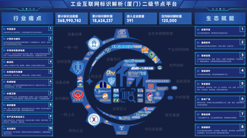 2022年8月,由象嶼集團(tuán)旗下廈門(mén)市物聯(lián)網(wǎng)產(chǎn)業(yè)研究院承接建設(shè)的國(guó)家工業(yè)互聯(lián)網(wǎng)標(biāo)識(shí)解析(廈門(mén))綜合型二級(jí)節(jié)點(diǎn)正式投入運(yùn)營(yíng),為廈門(mén)乃至全國(guó)企業(yè)提供專業(yè)的標(biāo)識(shí)注冊(cè)、標(biāo)識(shí)查詢、標(biāo)識(shí)解析等數(shù)據(jù)服務(wù)。迄今平臺(tái)標(biāo)識(shí)注冊(cè)量已超3.7億條,標(biāo)識(shí)解析量近2千萬(wàn)次,為保障工業(yè)互聯(lián)網(wǎng)互聯(lián)互通提供了關(guān)鍵基礎(chǔ)設(shè)施,助力工業(yè)企業(yè)提升數(shù)字化轉(zhuǎn)型能力,為廈門(mén)產(chǎn)業(yè)數(shù)字化發(fā)展注入一股澎湃新動(dòng)能。