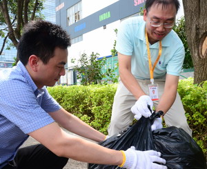 象嶼股份總經(jīng)理鄧啟東放下手頭繁忙事務(wù),組織全體員工利用午休時(shí)間清理象嶼保稅區(qū)一期。象嶼集團(tuán)旗下各公司經(jīng)營班子紛紛帶頭,示范作用感召越來越多的象嶼人積極參與進(jìn)來。