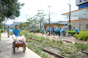 在象嶼保稅區(qū)一期、二期、象嶼鐵路公園,象嶼志愿者將倒伏但還頑強(qiáng)有生命力的樹木扶起重新植好,散落的殘枝敗葉都規(guī)整進(jìn)垃圾袋碼放在一起;在湖里大道,象嶼志愿者將碎玻璃破鐵皮清理打包,將覆蓋下水道口的腐敗物一一清除;在東榮社區(qū)、高殿社區(qū)等居民區(qū),象嶼志愿者協(xié)助社區(qū)居民清理出行道路和生活垃圾。