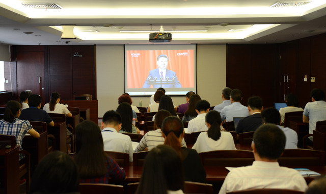 10月21日上午,象嶼集團(tuán)黨委組織部分員工收看紀(jì)念紅軍長(zhǎng)征勝利80周年大會(huì)現(xiàn)場(chǎng)直播,集團(tuán)董事長(zhǎng)、黨委副書記張水利與集團(tuán)各黨(總)支部黨員代表一同全程認(rèn)真收看。