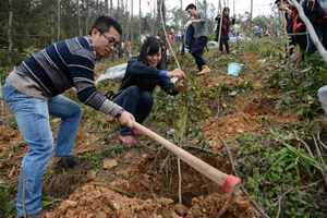 來自象嶼集團(tuán)和共建單位的志愿者百人團(tuán)互幫互助,共同栽種象嶼林。