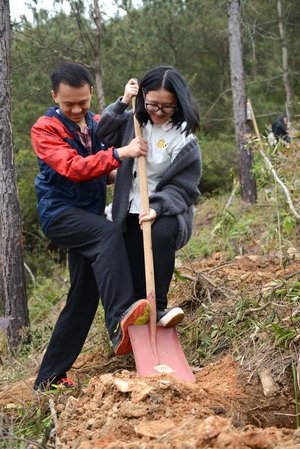 去年在象嶼林種下的喬木楓樹苗,雖然經(jīng)過莫蘭蒂臺(tái)風(fēng)的侵襲,卻得益于周邊大樹的庇護(hù),現(xiàn)已茁壯成長(zhǎng),片片紅葉惹人喜愛。今年志愿者們?cè)谙髱Z林里植下了鐵刀木,防火耐蟲蟻,而且相比去年的喬木要來得高大,多年后將使象嶼林高低錯(cuò)落有致,豐富仙岳山生態(tài)環(huán)境。