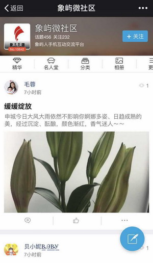 他們還在象嶼集團(tuán)公眾號(hào)“微社區(qū)”里寫下了一篇篇綠色盆栽的成長(zhǎng)日記,積攢和分享培植經(jīng)驗(yàn),傳遞熱愛聲明、綠色低碳的生活理念。