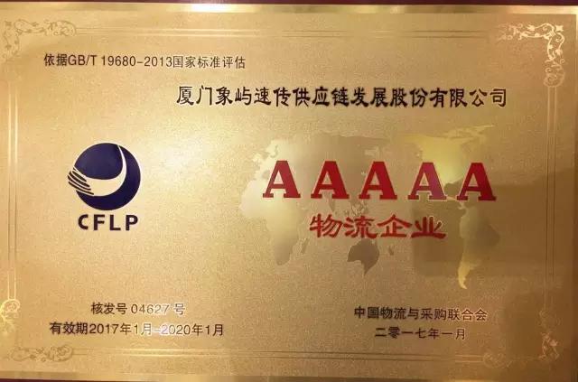 象嶼速傳供應(yīng)鏈榮膺國家5A級綜合服務(wù)型物流企業(yè)