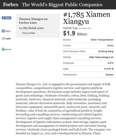 5月25日,美國《福布斯》發(fā)布2017年“全球上市公司2000強(qiáng)”排行榜(Forbes Global 2000),中國(含港澳臺(tái)地區(qū))共有309家公司登榜。象嶼集團(tuán)旗下上市公司象嶼股份(SH600057)首次進(jìn)入該榜單,位列第1785位,這標(biāo)志著全球化進(jìn)程中的象嶼股份進(jìn)入了全球資本市場(chǎng)的關(guān)注視野。