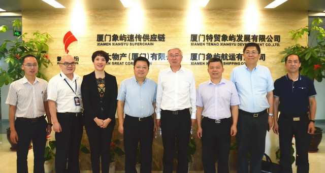 6月21日,廈門市政府副市長韓景義率領(lǐng)市府辦、自貿(mào)委、發(fā)改委、商務(wù)局領(lǐng)導(dǎo)一行蒞臨象嶼速傳體系內(nèi)公司成大物產(chǎn),考察調(diào)研公司經(jīng)營工作情況,現(xiàn)場召開座談會(huì),就成大發(fā)展過程中所需的政府支持進(jìn)行討論,并給予工作指導(dǎo)與建議。象嶼集團(tuán)總裁陳方、象嶼股份副總經(jīng)理兼象嶼速傳總經(jīng)理肖靜勤、象嶼股份副總經(jīng)理范承揚(yáng)、成大物產(chǎn)總經(jīng)理童曉青等熱情接待。