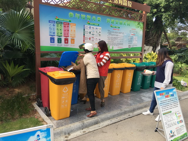 ▲廈門新為天企業(yè)管理有限公司象嶼分公司組織員工利用周末、晚上等時(shí)間在社區(qū)垃圾收集點(diǎn)做志愿督導(dǎo)員,用行動(dòng)倡議垃圾分類。