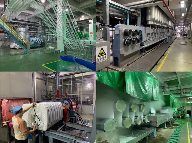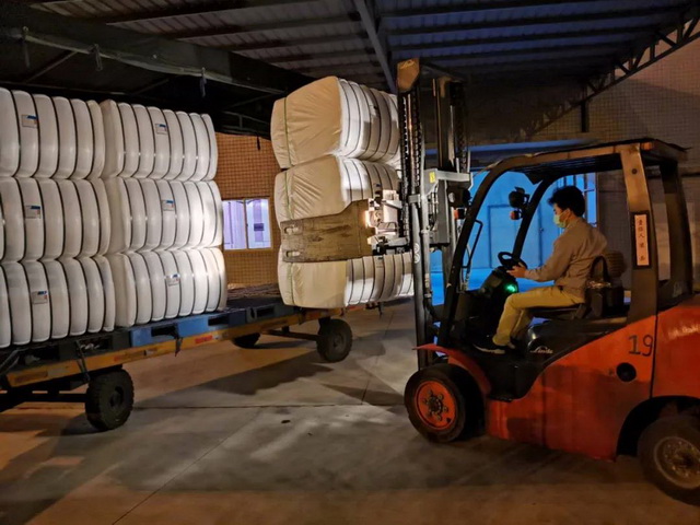 這一段時(shí)間里,象嶼興泓公司上下一派熱火朝天的工作景象,銷售部門口罩原料訂貨電話響個(gè)不停;生產(chǎn)線上,共三條ES衛(wèi)材生產(chǎn)設(shè)備24小時(shí)運(yùn)轉(zhuǎn),投料、紡絲、卷繞、延伸、烘干、切斷……一道道工序嚴(yán)格把關(guān),包包做工優(yōu)質(zhì)的ES衛(wèi)材新鮮出爐;倉(cāng)庫(kù)前,各工種緊密協(xié)同,快速有序地將產(chǎn)品打包裝車,源源不斷發(fā)往下游口罩生產(chǎn)企業(yè)。