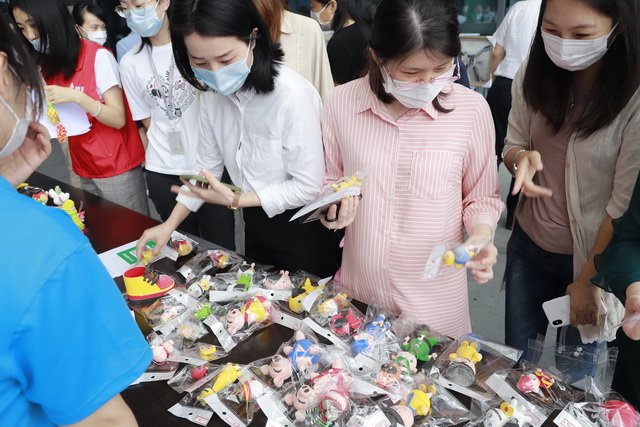 5月20日當(dāng)天,國(guó)際航運(yùn)中心涌動(dòng)著愛的暖流。在自閉癥兒童藝術(shù)作品展覽義賣區(qū),“星寶”們制作的各式可愛公仔和創(chuàng)意畫作吸引了不少象嶼員工和過路市民駐足圍觀。