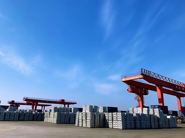 在河南鞏義象道物流園區(qū),來自新疆準東、石河子的鋁錠碼放得整整齊齊。