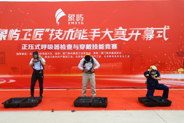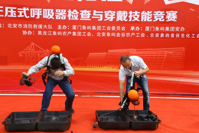 同日,正壓式呼吸器檢查與穿戴技能競賽在北安象嶼產(chǎn)業(yè)園舉行,來自南通、綏化、富錦、北安等地公司的17名選手依次登臺比拼技藝。