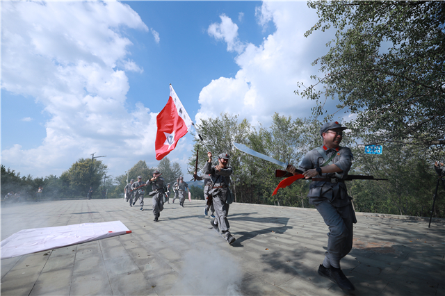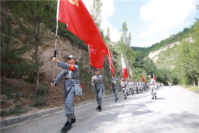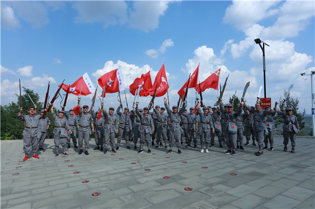 向著勝利曙光,隊伍頂著烈日在勝利山腳下集結(jié),向著山頂出發(fā),用2.5公里的徒步行軍致敬二萬五千里征途,感受紅軍堅韌不拔、團結(jié)互助、勇往直前的精神,汲取長征精神力量。