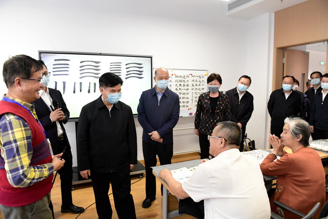 在慈愛學(xué)院,民政部領(lǐng)導(dǎo)一行與慈愛院內(nèi)長(zhǎng)者親切交流,認(rèn)真聆聽了解各位長(zhǎng)者在象嶼慈愛的日常飲食起居、康復(fù)狀況及學(xué)習(xí)生活等,聽到長(zhǎng)者們?cè)谙髱Z慈愛吃得好、玩得好,還學(xué)習(xí)到新技能,結(jié)識(shí)了新朋友,領(lǐng)導(dǎo)們表示欣慰。