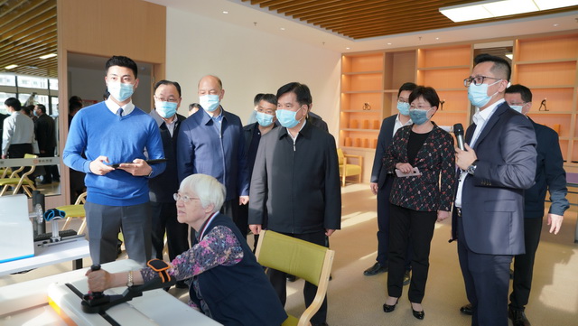 在聽取項(xiàng)目介紹后,調(diào)研組一行參觀了休閑文化配套空間、護(hù)理樓、養(yǎng)老公寓等區(qū)域,對(duì)象嶼慈愛的長(zhǎng)者入住進(jìn)展、醫(yī)養(yǎng)結(jié)合、慈愛學(xué)院課程開設(shè)、疫情防控等整體情況及運(yùn)營(yíng)成果進(jìn)行深入了解,重點(diǎn)關(guān)注了包括“智慧一卡通”、全院可視化管理系統(tǒng)、智能餐盤等在內(nèi)的智慧化養(yǎng)老服務(wù)體系,并給予充分肯定。