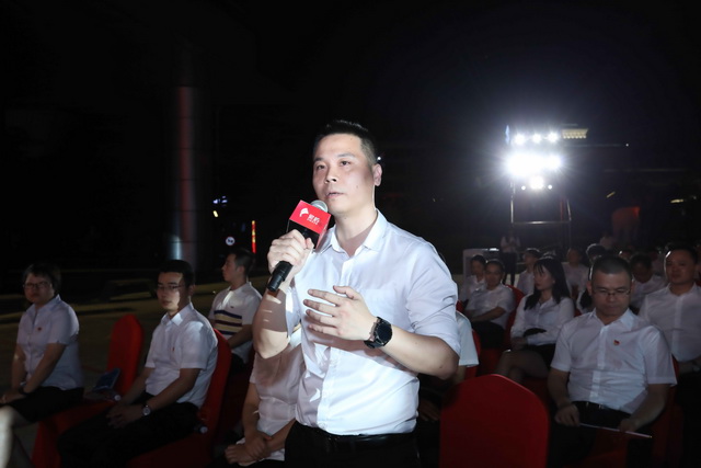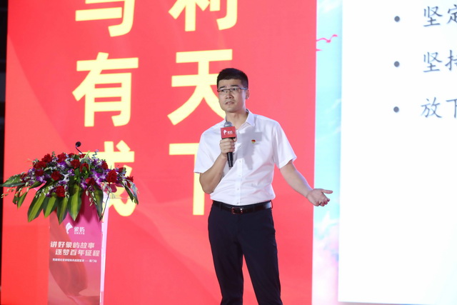 ▲福建象嶼房地產(chǎn)總經(jīng)理陳志杰帶來宣講《振奮文化精神,緊抓發(fā)展機(jī)遇,以實(shí)干篤定前行》
