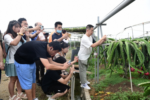 其中,在一產方面,團隊協(xié)同鎮(zhèn)、村梳理政策,探索種植技術升級,促進提質增效,實現(xiàn)年產值超過4000萬元。經過技術改良,他們培育的火龍果皮厚、耐儲藏、甜度高,還有黃龍果和青龍果,個頭更大、果味更香,經濟價值也更高。