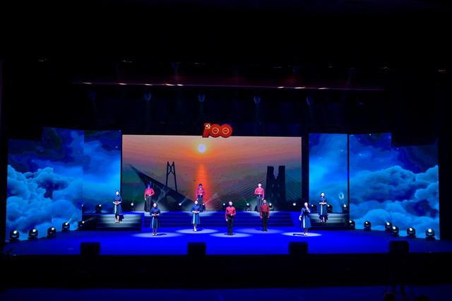 “迎風(fēng)飄揚的旗,我們舉著你,舉起你就是舉起我們自己。迎風(fēng)飄揚的旗,我們跟著你,跟著你就是跟著信仰堅定不移。”合唱《迎風(fēng)飄揚的旗》,拉開展演活動的序幕。這面鐮刀錘頭的旗幟穿越百年,卷走黑夜迎來晨曦,引領(lǐng)國家富強、民族復(fù)興、人民幸福。