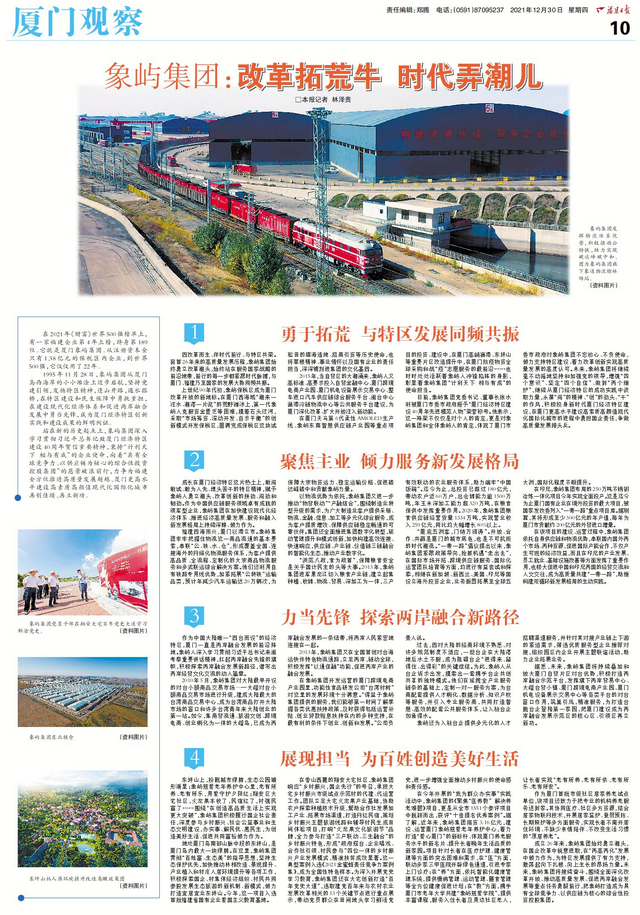 成立26年來,象嶼集團(tuán)始終勇立潮頭,在國企改革中銳意進(jìn)取,在“兩高兩化”發(fā)展中傾力作為,為特區(qū)發(fā)展提供了有力支持,激蕩起向下扎根、向上生長的昂揚力量。未來,象嶼集團(tuán)將接續(xù)奮斗,圍繞全面深化改革開放、推動高質(zhì)量發(fā)展、促進(jìn)兩岸融合發(fā)展等重點任務(wù)勇毅前行,把象嶼打造成為具有全球競爭力、以供應(yīng)鏈為核心的綜合性投資控股集團(tuán)。