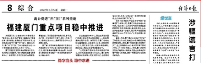 新華社以《廈門:一季度各重大項目平穩(wěn)運行》為題,報道象嶼人今年的“快節(jié)奏”。