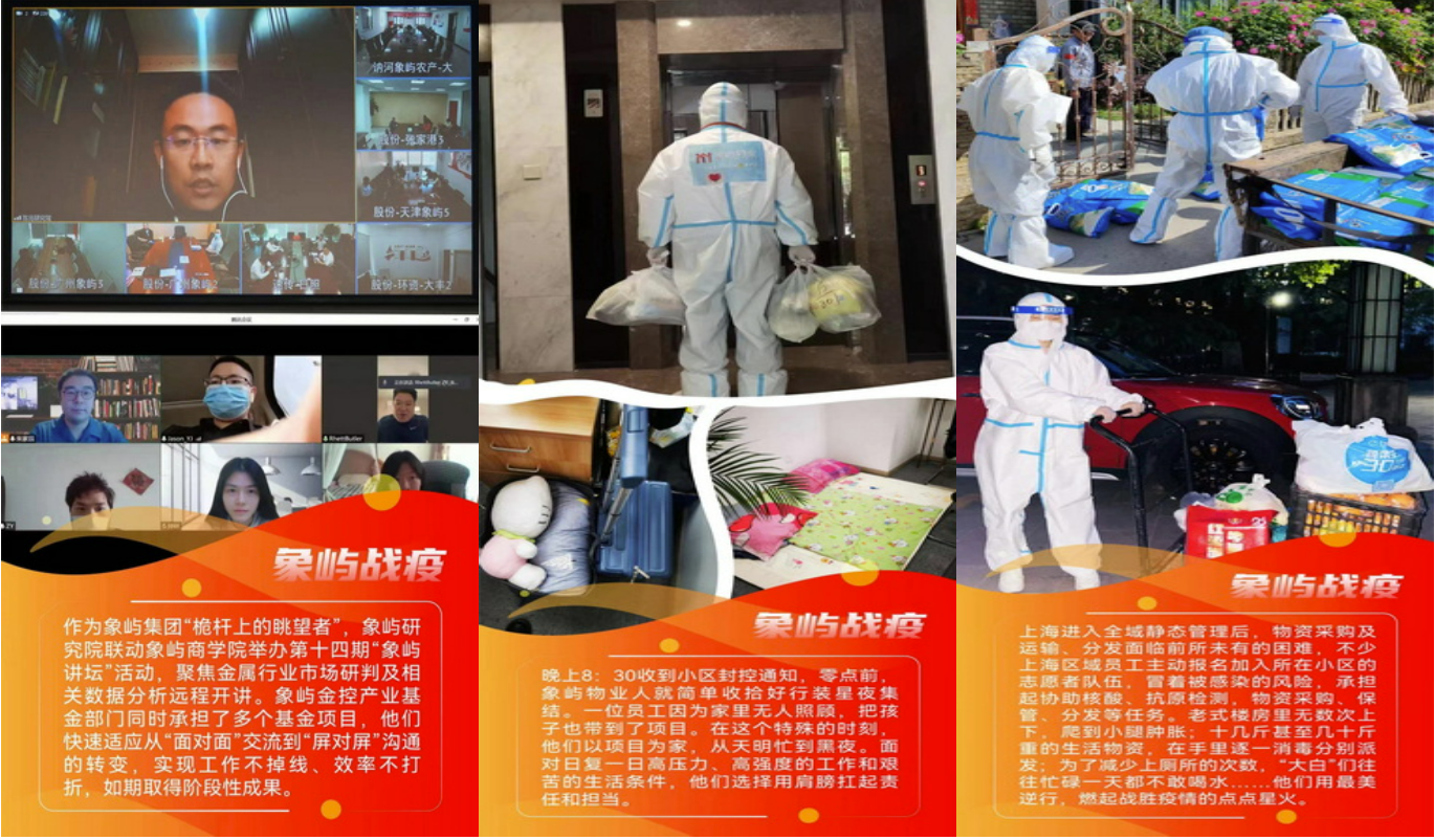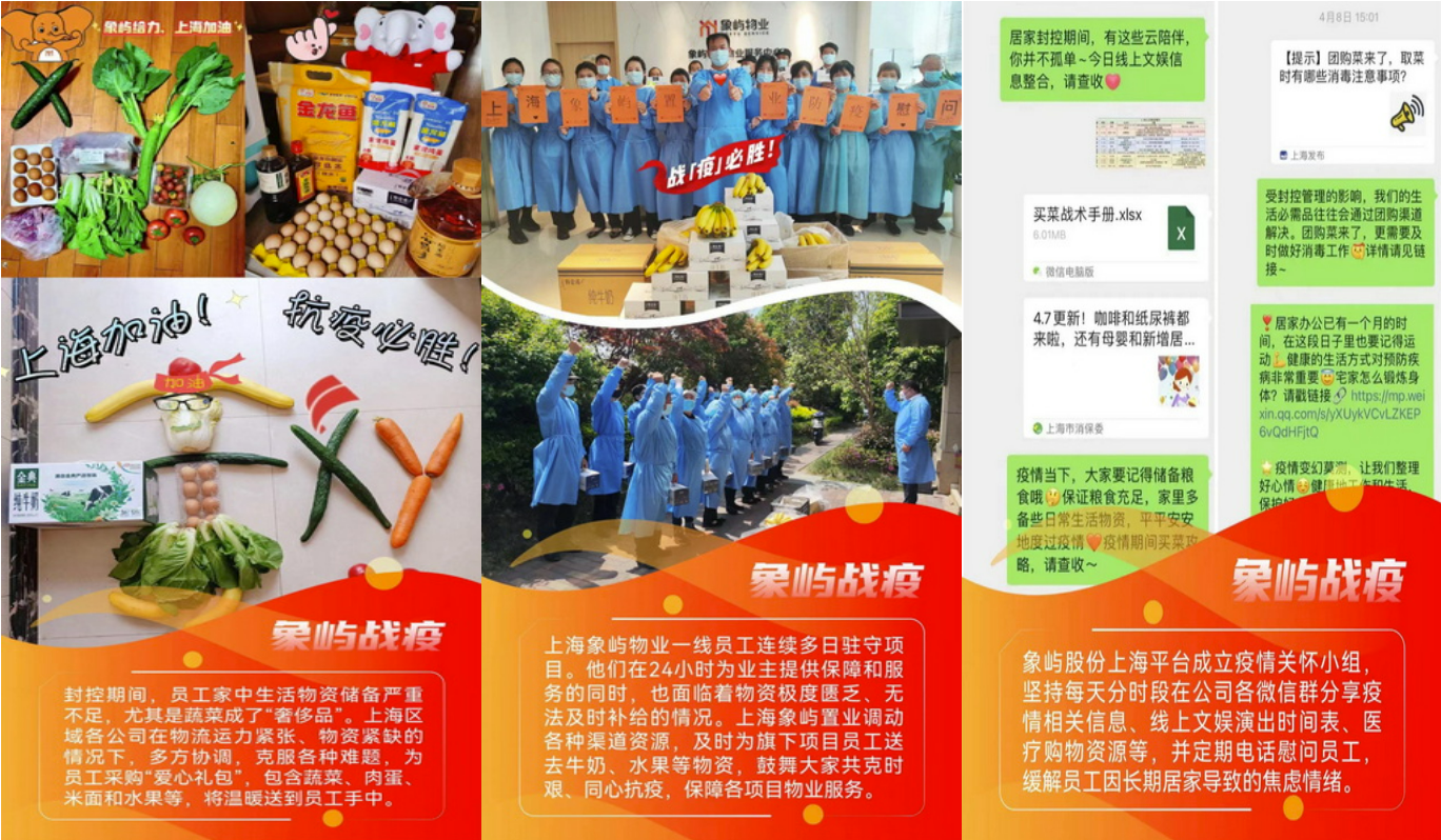 自上海疫情防控攻堅(jiān)戰(zhàn)打響以來,923位象嶼人堅(jiān)守崗位,奮戰(zhàn)在此,他們的安危冷暖牽動(dòng)人心。象嶼集團(tuán)黨委、集團(tuán)公司、集團(tuán)工會(huì)特向在滬員工發(fā)去暖心慰問信,并提供24小時(shí)不間斷的員工心理關(guān)愛熱線,幫助員工疏解情緒壓力。集團(tuán)黨委、集團(tuán)工會(huì)還相繼出臺(tái)多項(xiàng)防疫專項(xiàng)補(bǔ)助政策,并統(tǒng)籌協(xié)調(diào)旗下象嶼股份、象嶼地產(chǎn)、象嶼金象等相關(guān)行業(yè)落實(shí)在滬員工關(guān)愛各項(xiàng)措施,為員工構(gòu)筑堅(jiān)實(shí)后盾。