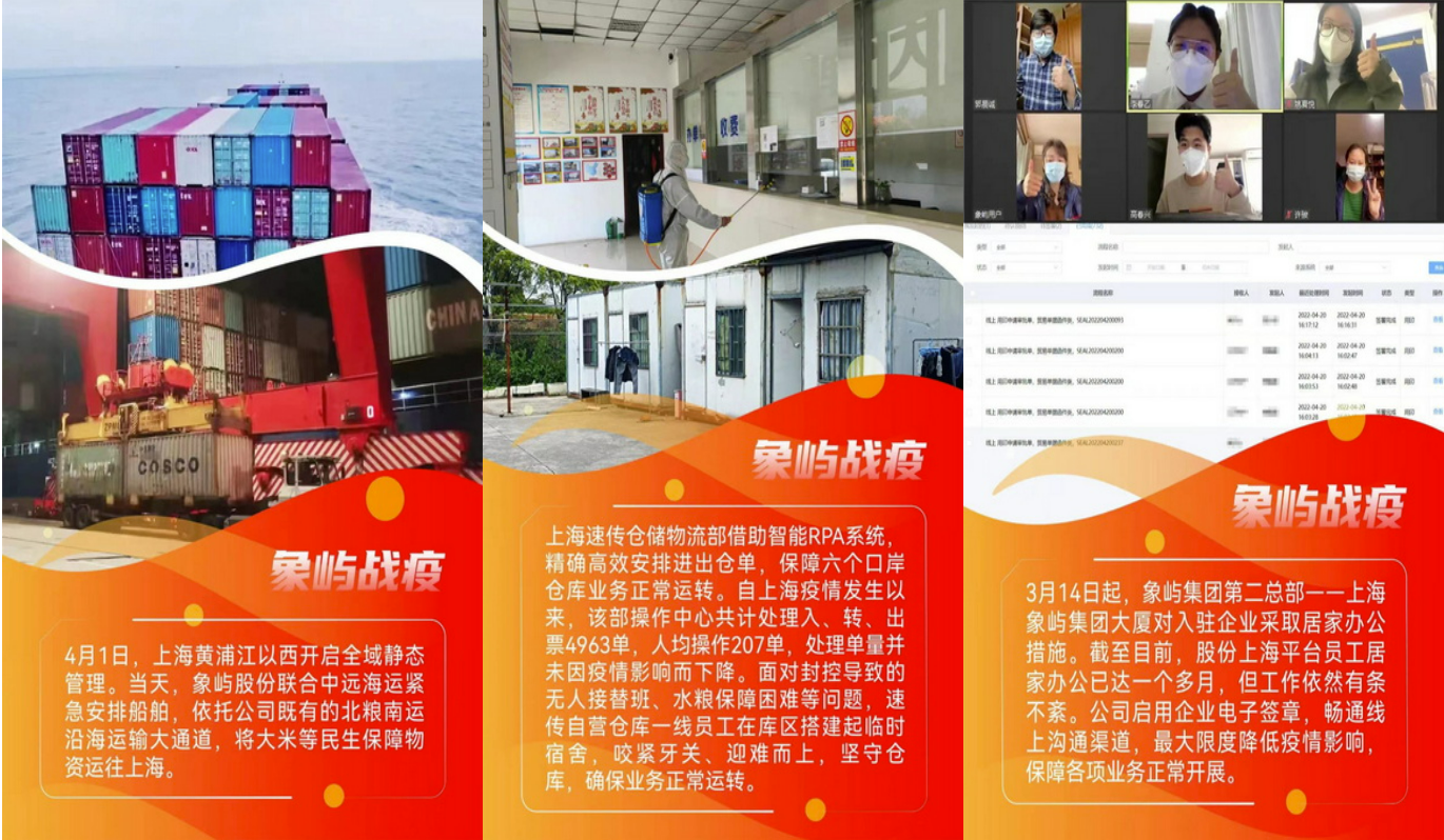城市按下“暫停鍵”,但象嶼上海區(qū)域業(yè)務(wù)不停、服務(wù)不停。滬上象嶼人排除萬難,共克時(shí)艱,繪就一幅幅滿載著堅(jiān)守、溫暖與大愛的戰(zhàn)疫畫卷。支撐他們?nèi)找蛊床?,除了象嶼大家庭的鼎力支持,更有敢闖敢拼、艱苦奮斗、堅(jiān)韌不拔的象嶼草根精神,以及“業(yè)務(wù)數(shù)據(jù)化、運(yùn)營(yíng)平臺(tái)化、管理智能化”的數(shù)字化轉(zhuǎn)型成果。