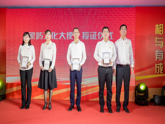 ▲象嶼集團黨委書記、董事長張水利為新加盟企業(yè)高管頒授“象嶼文化大使”證書