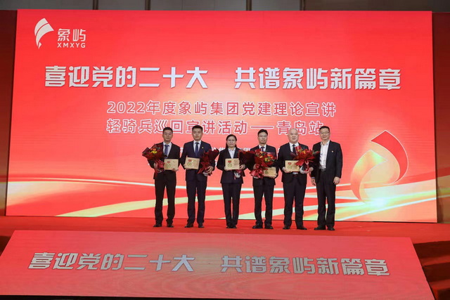 6月30日晚,“喜迎黨的二十大,共譜象嶼新篇章”象嶼集團(tuán)黨建理論宣講輕騎兵巡回宣講活動(dòng)在青島舉行。象嶼集團(tuán)黨委副書記、總裁鄧啟東,黨委副書記、工會(huì)主席邵蕰默,副總裁林志勇及200余名周邊區(qū)域公司員工代表現(xiàn)場聆聽,全球各地象嶼員工也以觀看視頻直播的方式“云參與”。